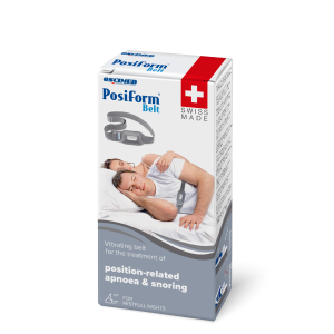Está comprovado que dormir de costas provoca o ronco e a apneia. O POSIFORM BELT, Cinto Antirronco, é uma solução simples e eficaz. Este cinto consiste num dispositivo eletrónico de aprendizagem inteligente e um confortável cinto peitoral. O aparelho emite uma vibração que avisa o utilizador quando ele dorme de barriga para cima fazendo alterar a sua posição de dormir, reduzindo assim o ressonar. Após algumas noites, a posição lateral será adotada naturalmente. O cinto flexível e anti-transpirante é usado no peito ou na cintura, diretamente no corpo ou sobre a roupa interior. Somnofit-Belt também possui 2 clipes que permitem a fixação do aparelho, sem cinto, diretamente na roupa interior. A sua utilização é bastante simples. O aparelho tem vários níveis de vibração ajustáveis.